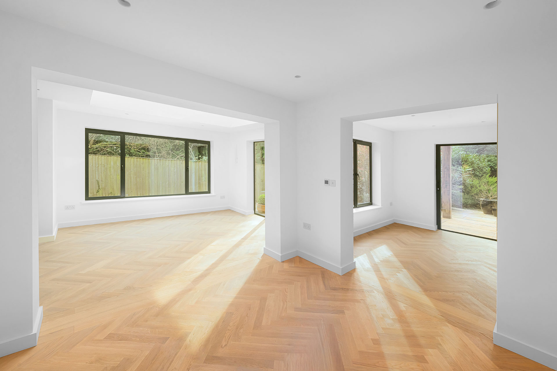 This renovation and extension project in Chobham was defined by its elegant curves. The flowing lines throughout the design bring a unique sense of movement and sophistication to the space. It’s the kind of detail that makes a lasting impression—and undoubtedly kept the plasterers and decorators on their toes.