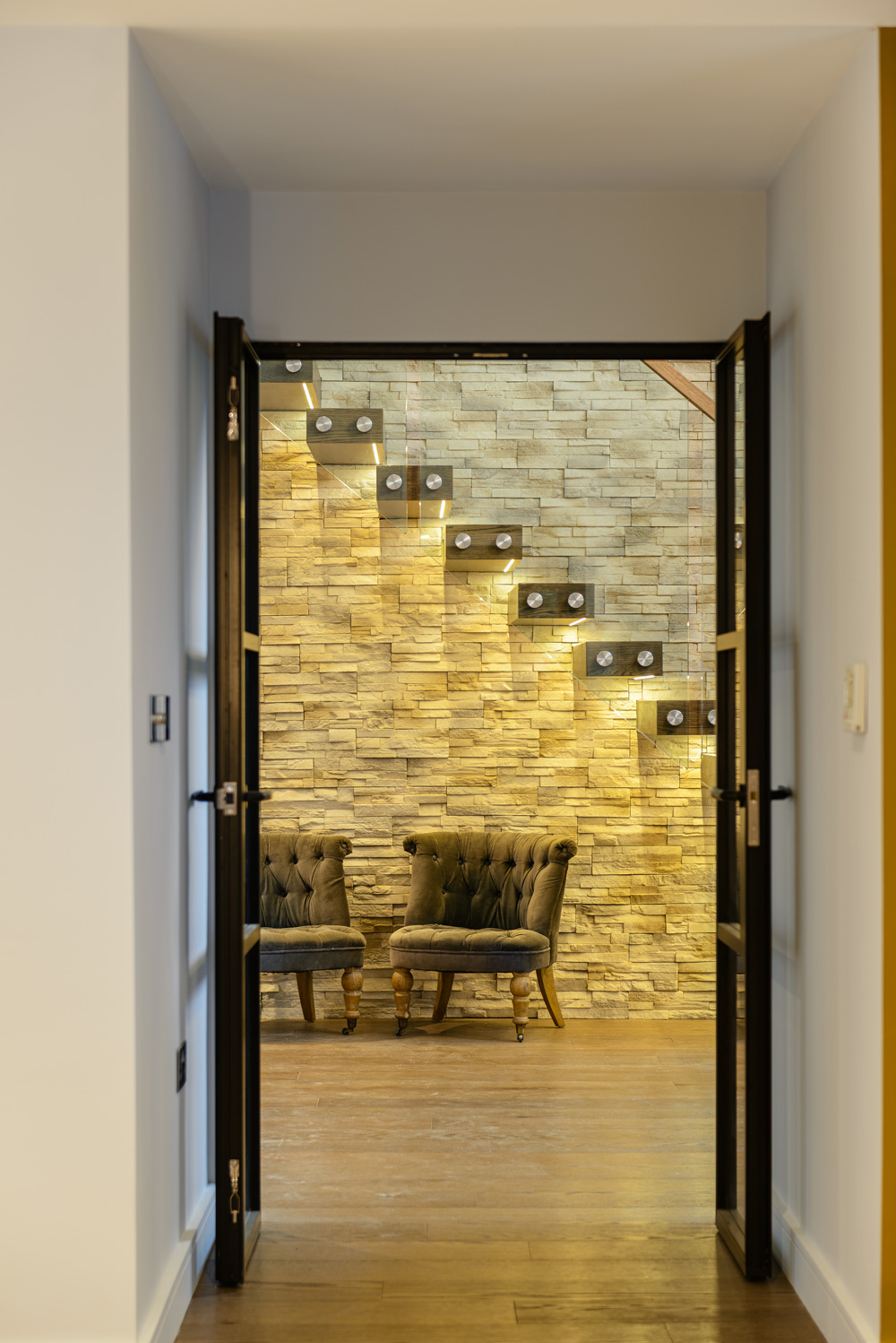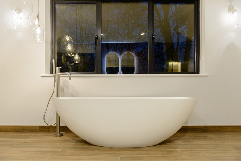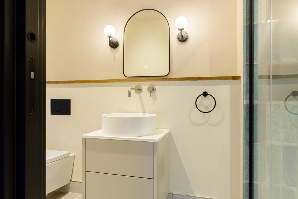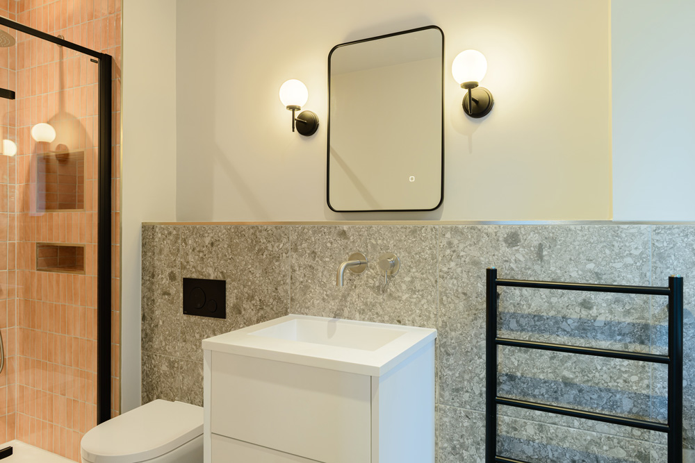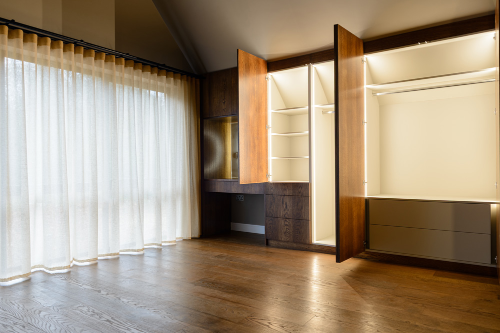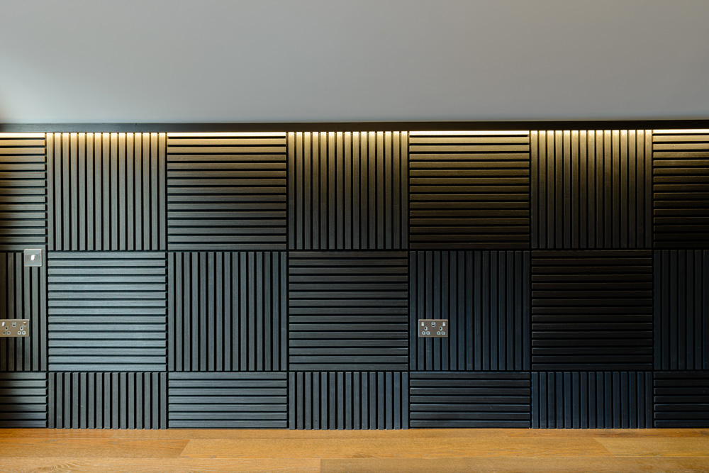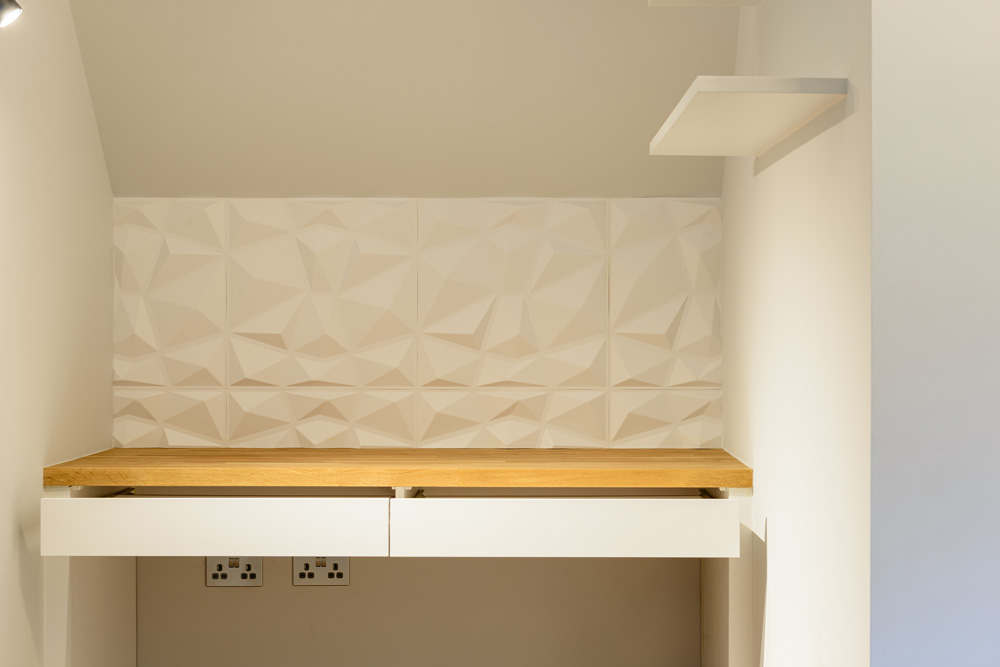 Bungalow renovation at Materials in Harmony transformed a dated bungalow into a completely reimagined family home. The existing roof was removed and replaced with a new timber frame first floor and trussed roof, creating a fresh layout and a much stronger architectural presence. The exterior features a combination of microcement columns, warm timber cladding, silicone-based render, brick slips, and aluminium windows. This blend of materials and textures creates a bold façade and gives the property strong kerb appeal.